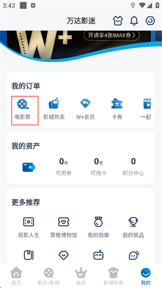 1、在本站下载安装软件,登录软件即可字首页看到当前正在热映的电影,还有卡券礼包、最新活动、w+专区等功能;