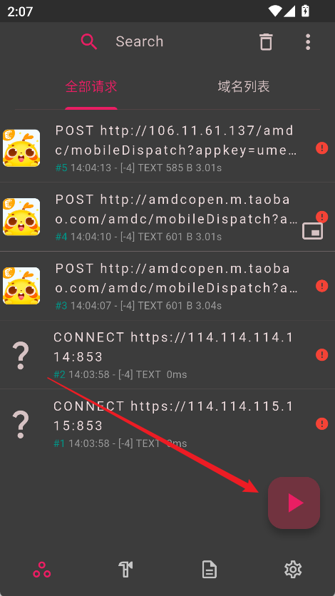 1、遇到网络异常或者接口报错时,直接在手机上开启拦截模式,就能精准锁定异常请求,从而快速定位并解决底层逻辑漏洞。