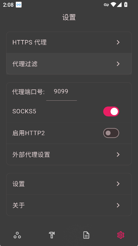 4、在该菜单中,用户可以灵活开启HTTPS代理、设置应用白名单等功能。