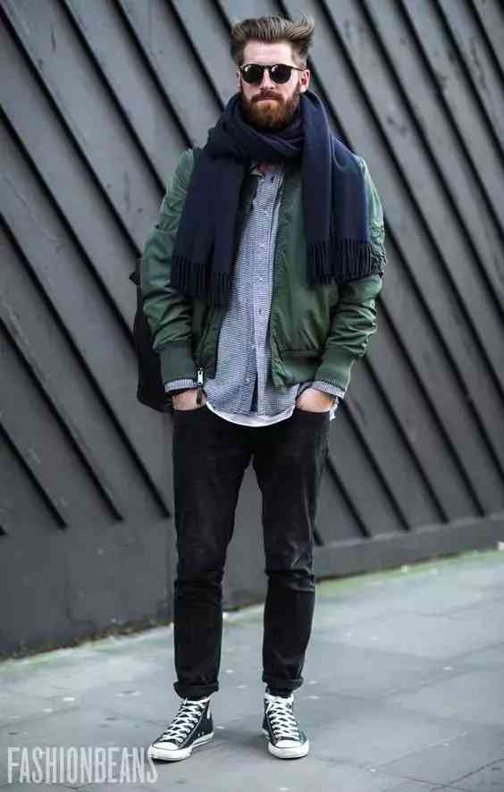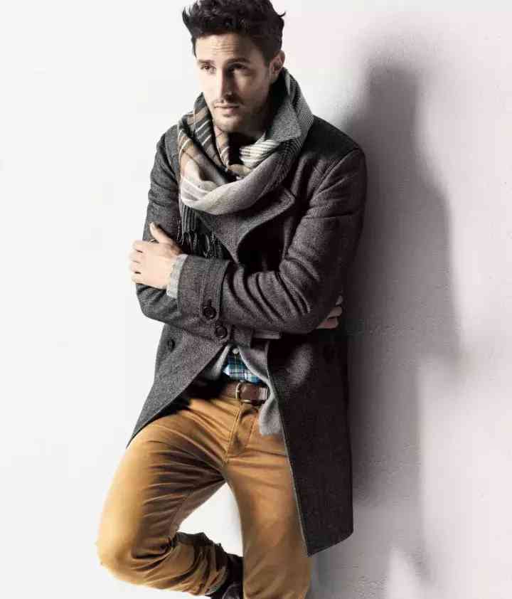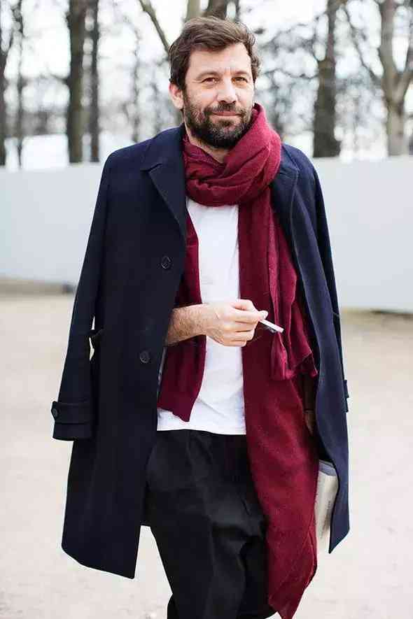 男士戴围巾都是以简单简约为主,简单轻松地将围巾绕一圈的打法同样适合大部分的服装做造型,而选择颜色上突出的围巾会让造型更抢眼。
