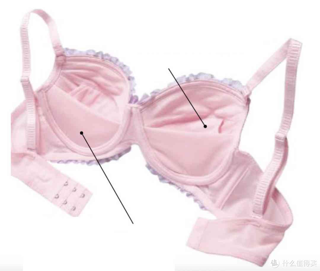 无钢圈款式,胸下围采用上薄下厚罩杯,搭配插片袋,塑造圆润胸型,罩杯内侧的两层弹力网布,防止外扩。