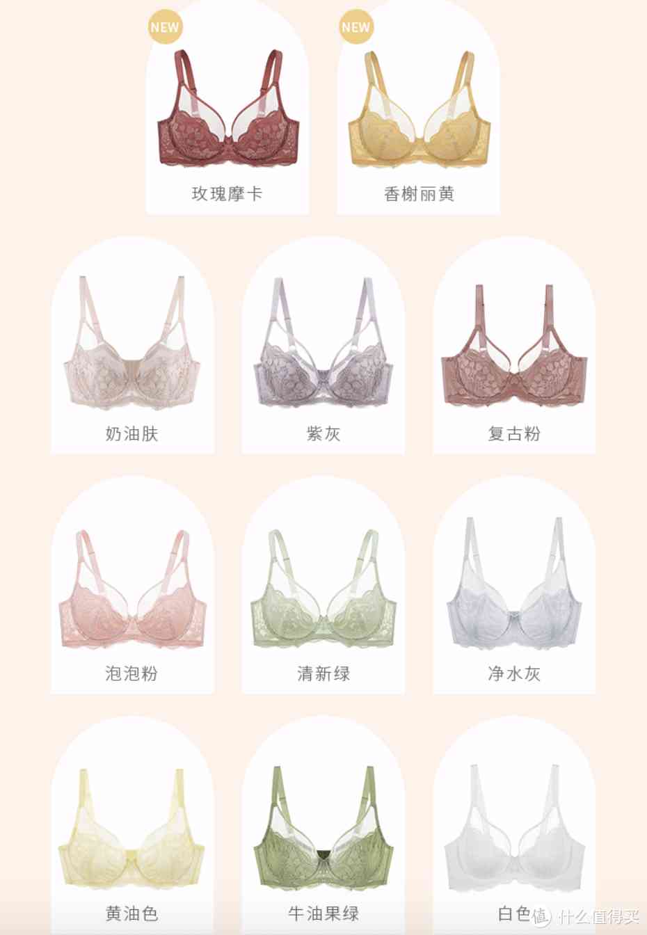 整体风格以简约和甜美两种风格为主,更符合年轻女孩的审美,在挑选内衣的时候也可以按需求、功能、钢圈等选项筛选,精准快速的找到合适自己的内衣。