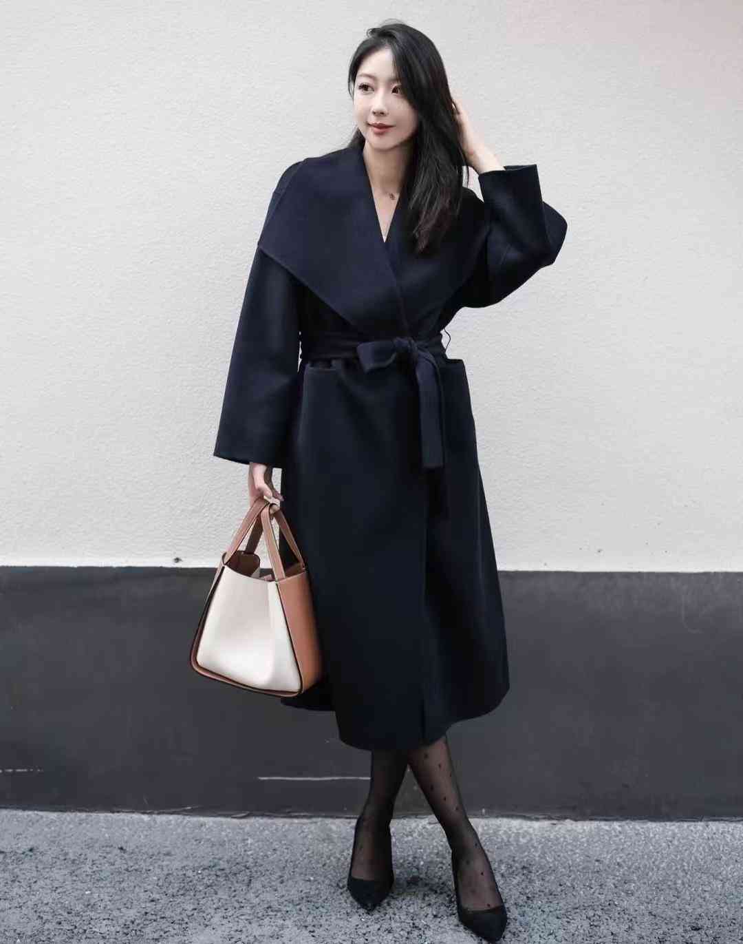 秋冬氛围感拉满的藏青色大衣,成都已经断崖式降温了,穿上大衣出门也刚刚好,气质高级的藏青色和咖色系的大容量水桶包很搭,摸起来很有质感,手拎和斜挎都很方便,一套冷艳出街~