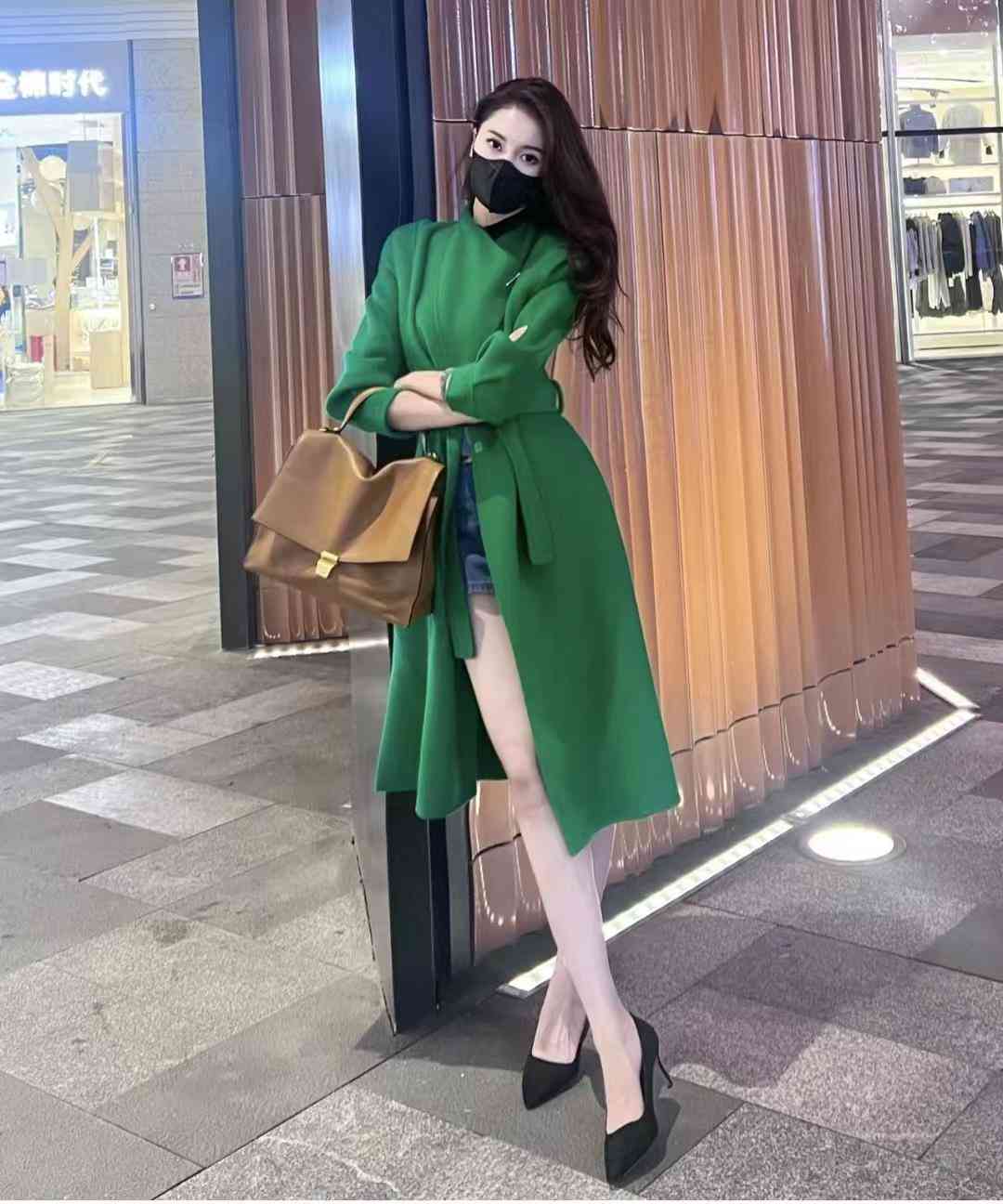 秋冬季最爱穿大衣了,而且绿色的大衣上身真的太显白了,非常适合都市白领,搭配牛仔短裤和高跟鞋,这套在深圳穿没问题~