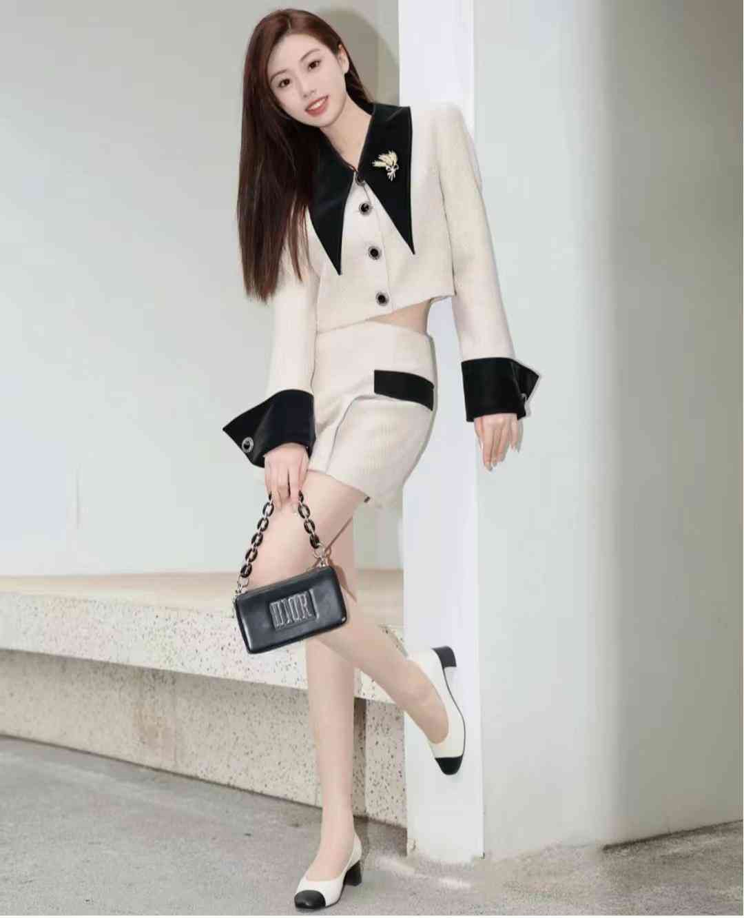 look10 小香风套装+拼色粗跟鞋
