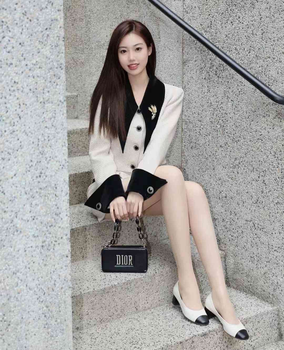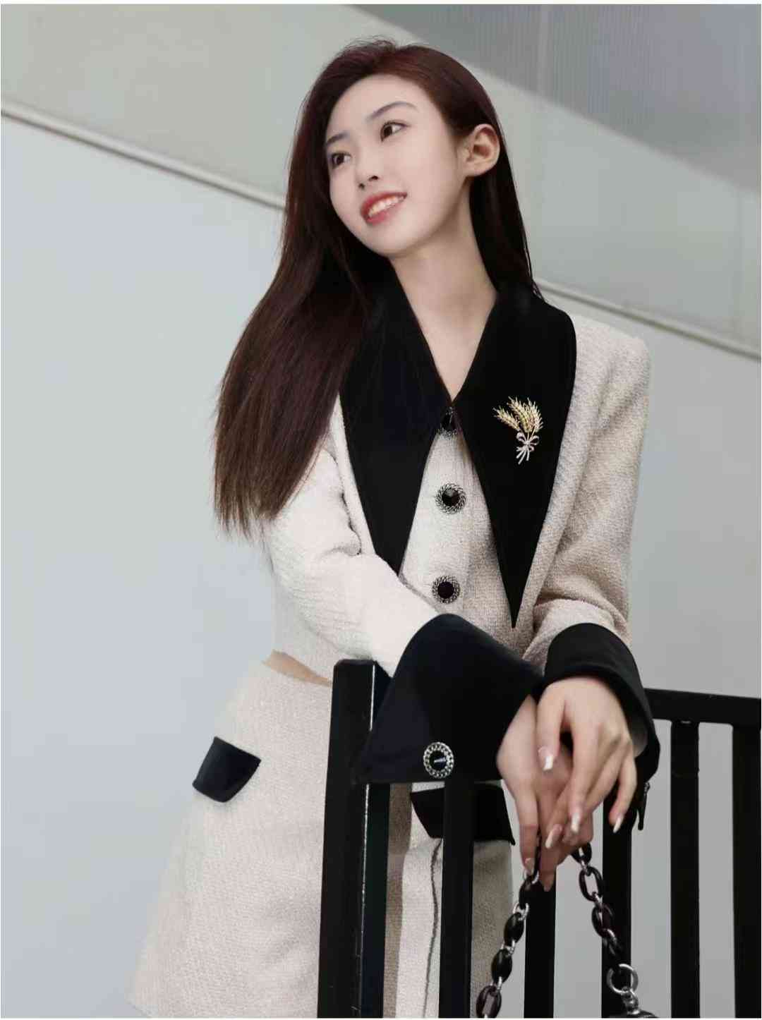 西装:MorningHaze;裙子:果核宇宙;包:Night Breeze