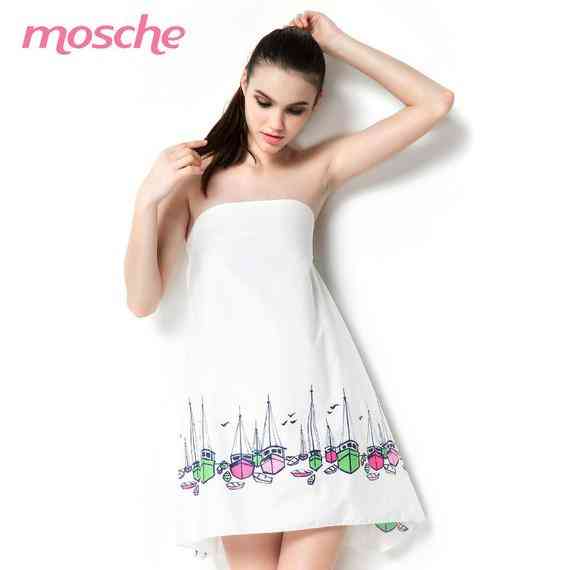 8、满饰纯棉手绘帆船印花白色抹胸短睡裙可外穿家居服连衣裙4306