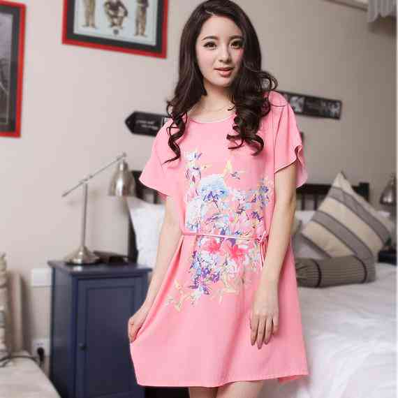 9、西荷2014春夏季新款性感棉质睡裙女士可爱短袖大码睡衣家居服薄