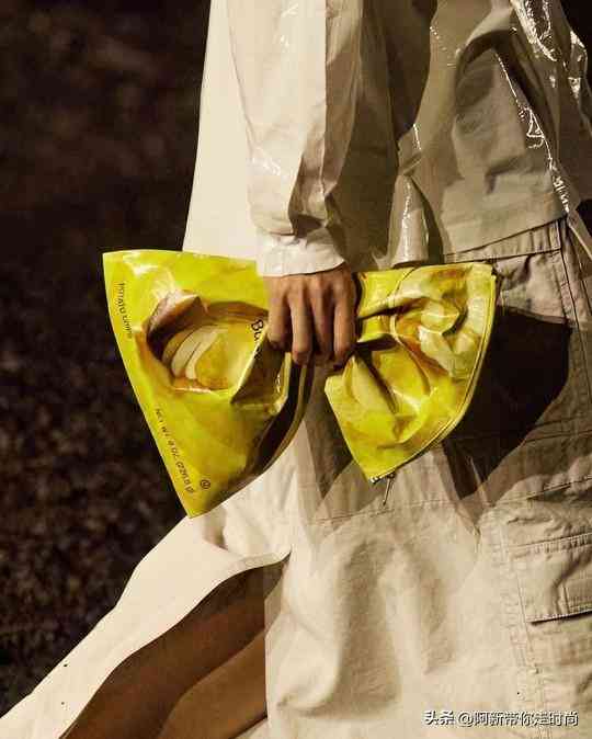 Balenciaga 2023春夏时装秀本月在巴黎落下帷幕,新季配饰中最引人注目的是与美国薯片品牌 Lay’s(乐事)联名款手拿包——采用皮革完全还原乐事薯片的包装,仔细看能看到「Balenciaga」徽标,还推出原味、辛辣等不同口味选择。顶部设置拉链封口,内部选用银色衬里,还原度和搞怪度都100分。