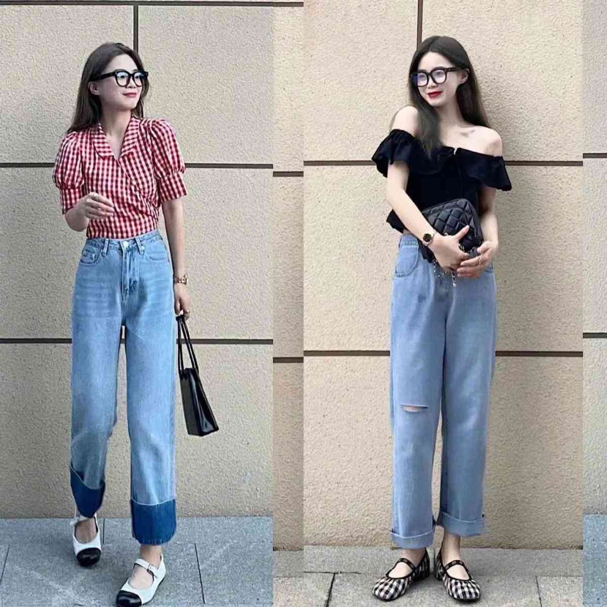 阔腿裤搭配T恤的穿搭简直是太甜美纯真了,浅蓝色的牛仔裤暗藏一点点的小心机,裤腿挽起又是另外一种颜色,色彩的碰撞擦出了别样的火花。