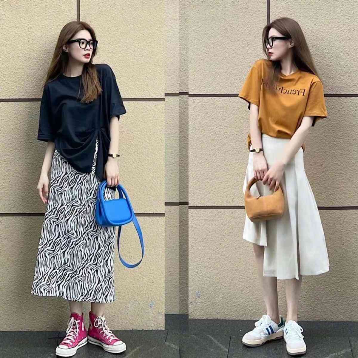 2、T恤+半身裙