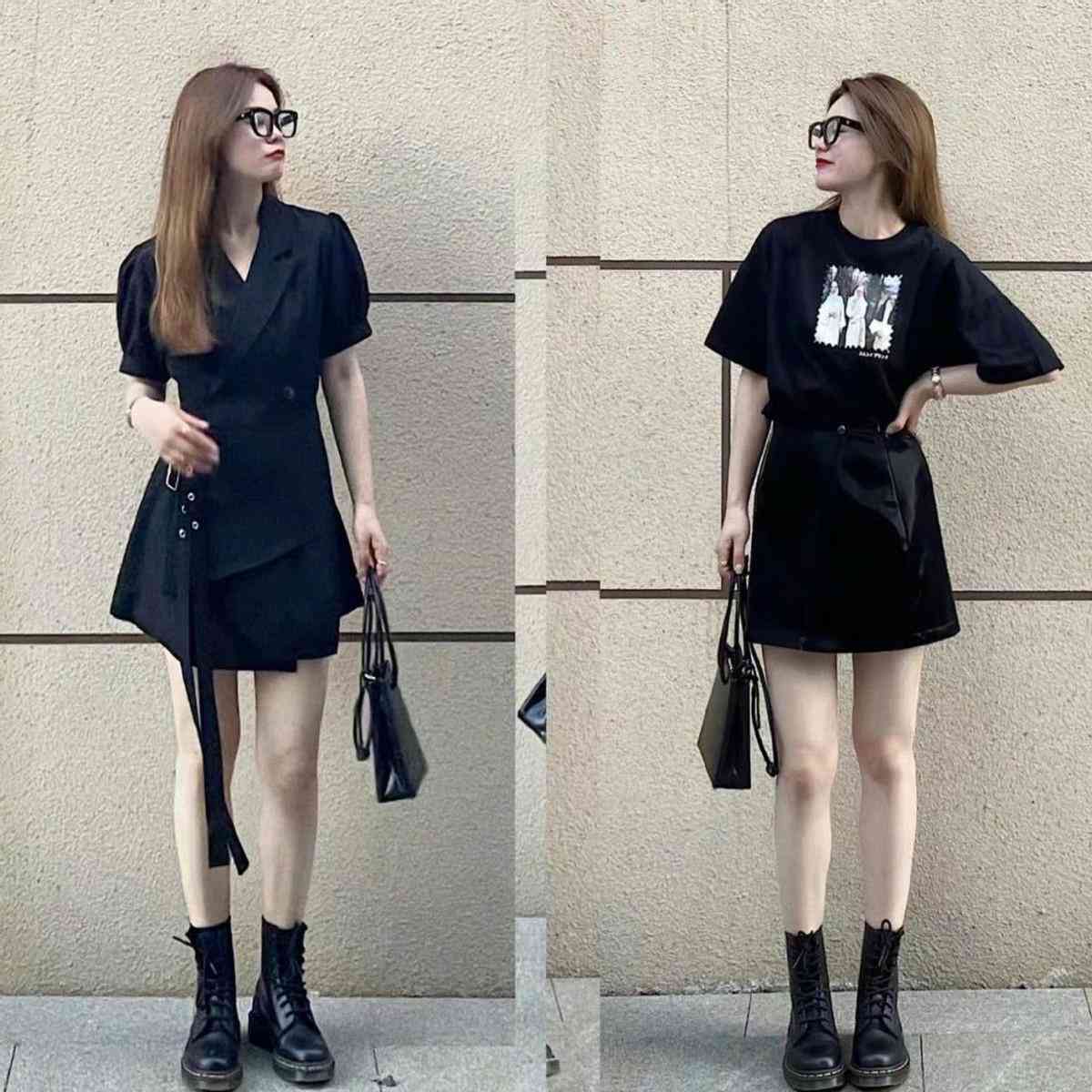纯色的设计比较简单,但是简单的款式并没有让这件连衣裙看起来平凡普通,首要的设计感,小A字形的裙摆,搭配一双马丁靴,这个夏天也可以做一个酷酷的女生。