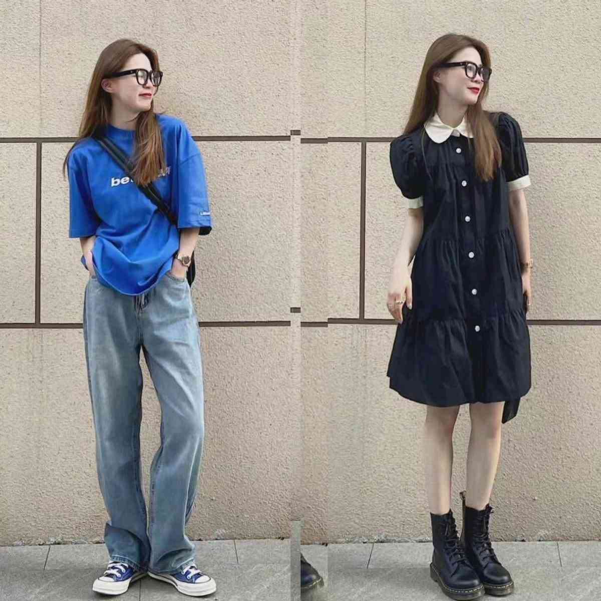 1、T恤+宽松长裤