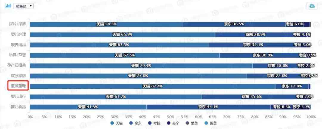 线上——平台:童装领域,天猫独大