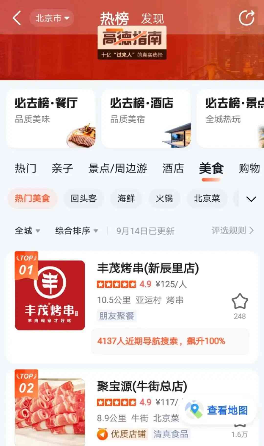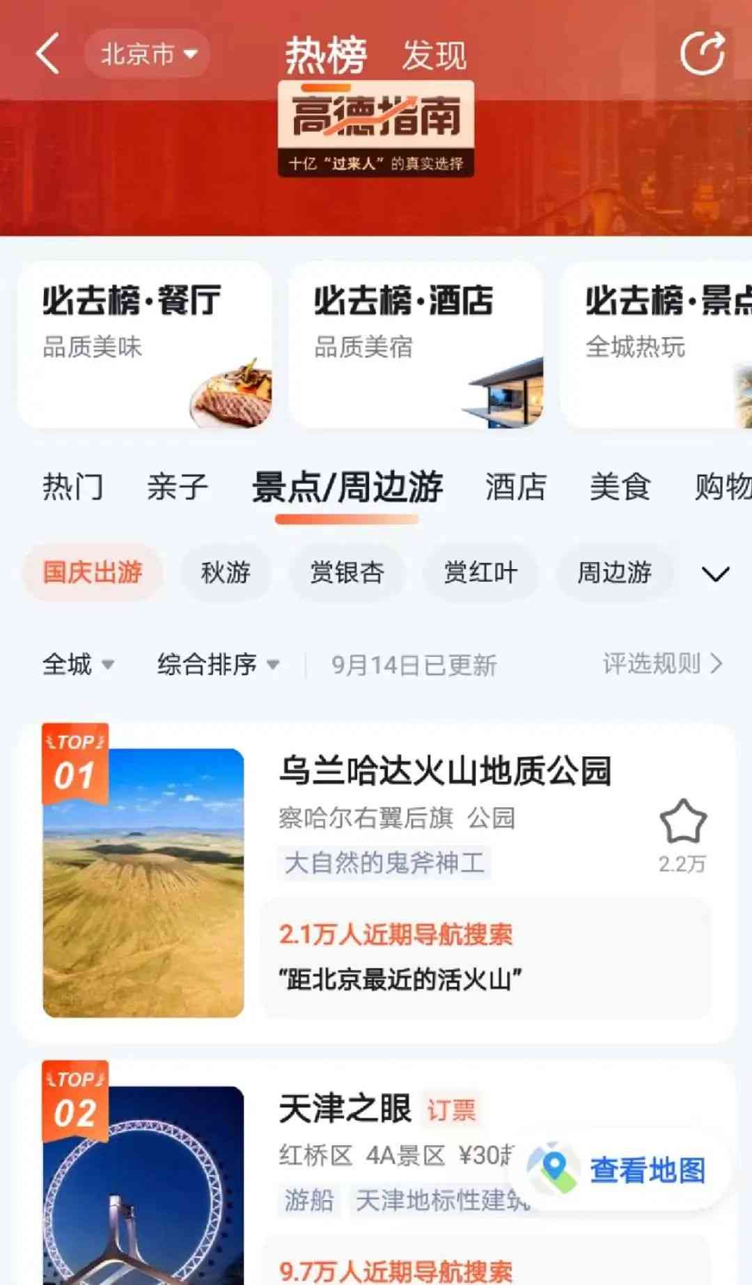 即可查看高德指南热榜
