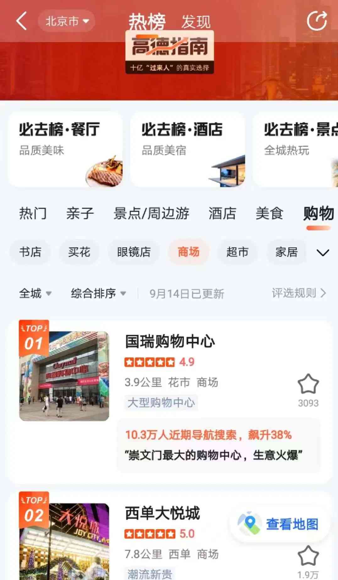 高德指南人气榜里大家都爱逛的