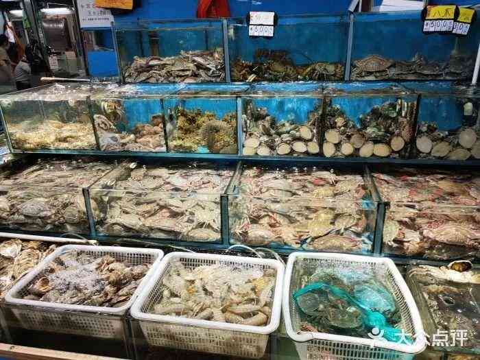从海里直运的海产品等
