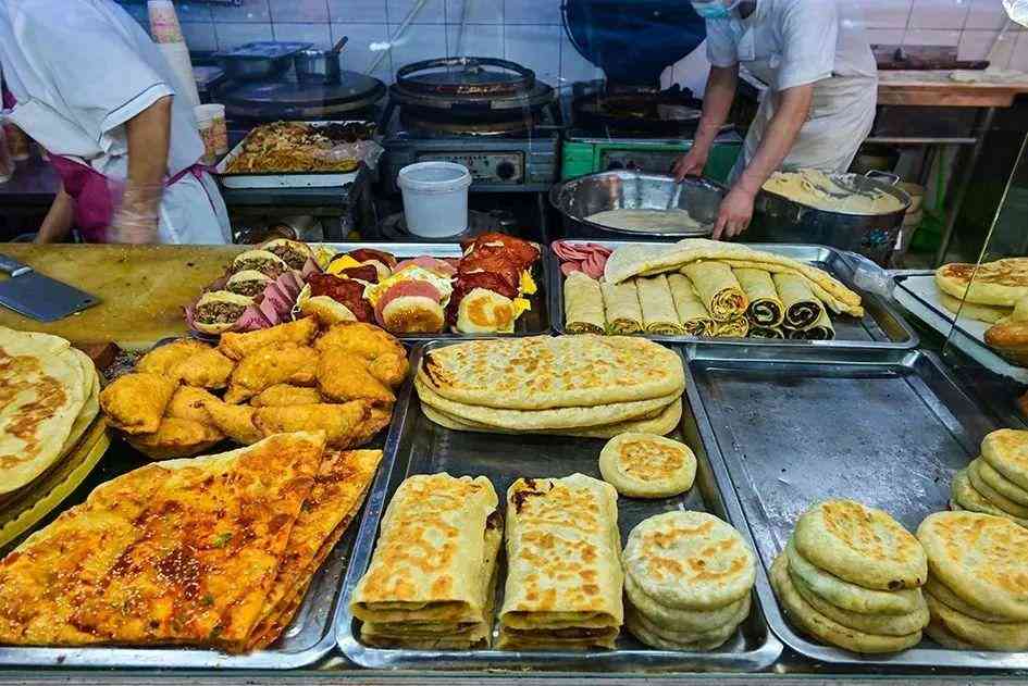 肉饼、包子、炸糕、面条等各种