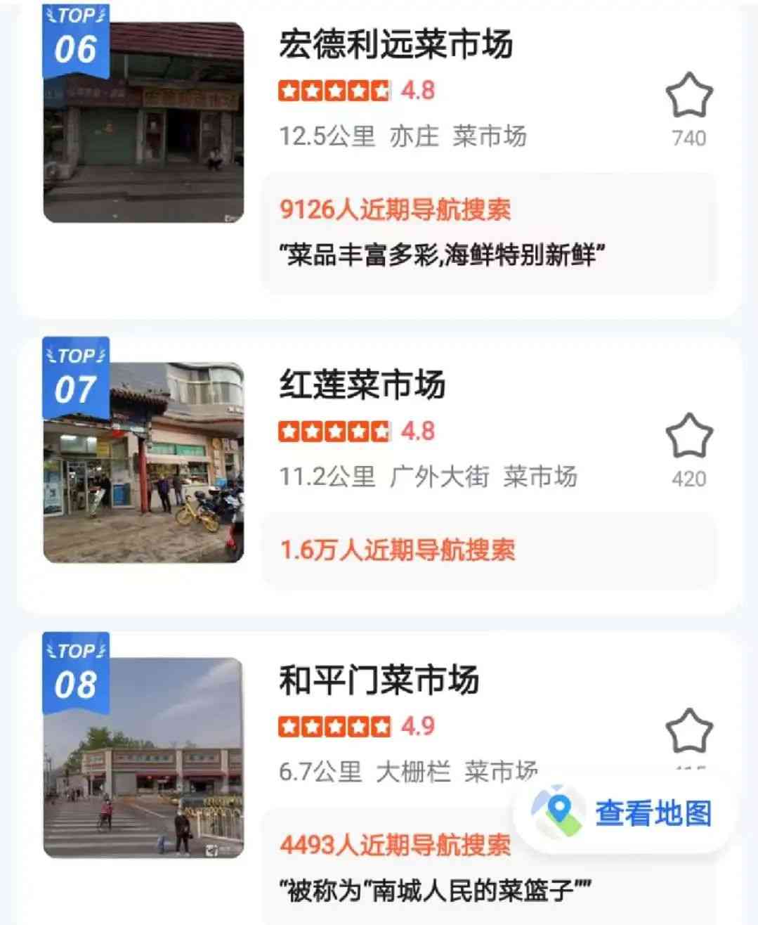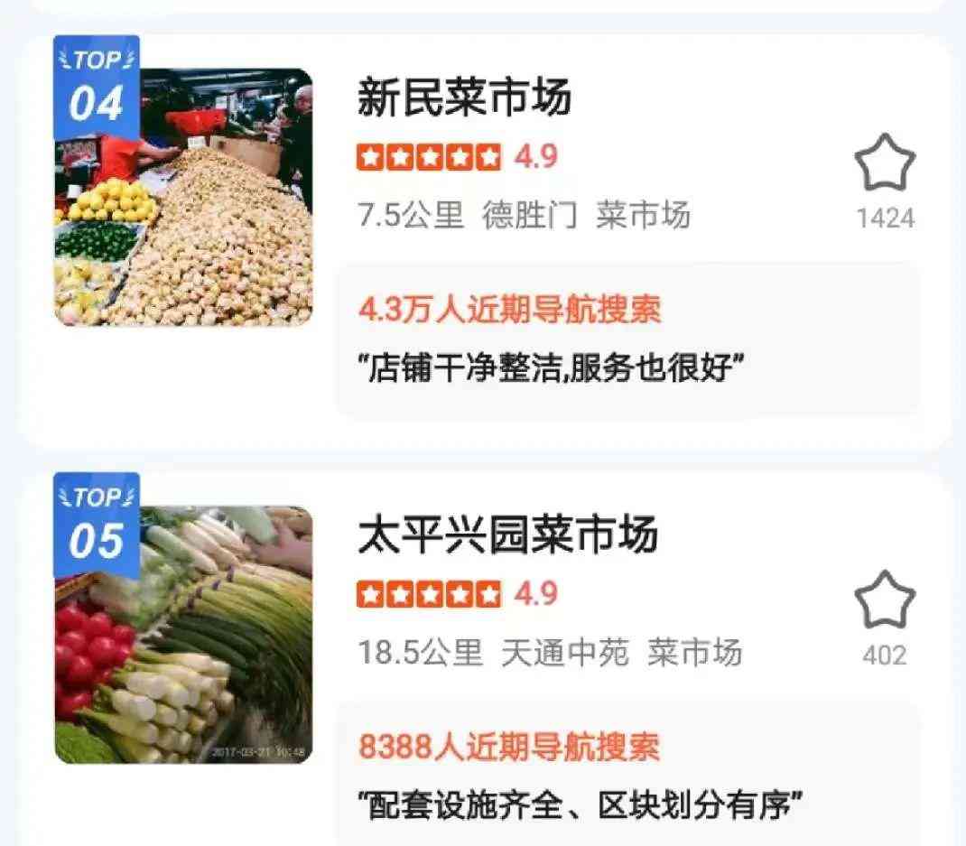 “高德指南”人气榜之菜市场