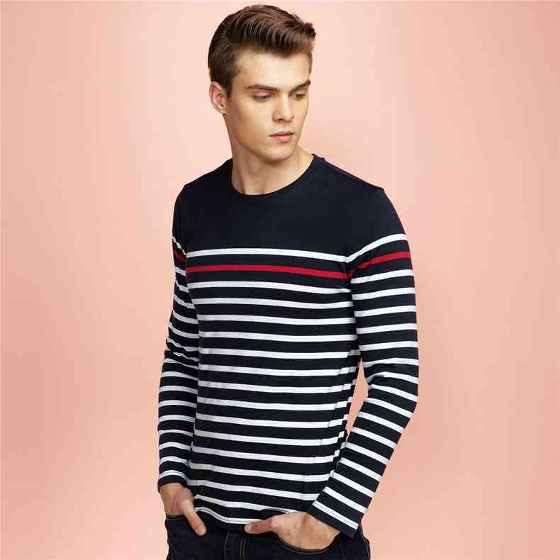 从法国海军专用制服,到风靡世界的流行元素,海魂条纹的干净气质,始终让人欲罢不能。这件T恤就是选用了爽朗海魂条纹,让阳光活力成为习惯。柔然的天然棉纤维,带来极度舒适感,配合轻微磨毛,质感更丰软。 罗纹圆领设计 贴合颈部线条,触感亲肤柔软,长袖收口的设计,整洁清爽。随意搭配一条休闲裤或者牛仔裤,轻松穿出型男的气质来。