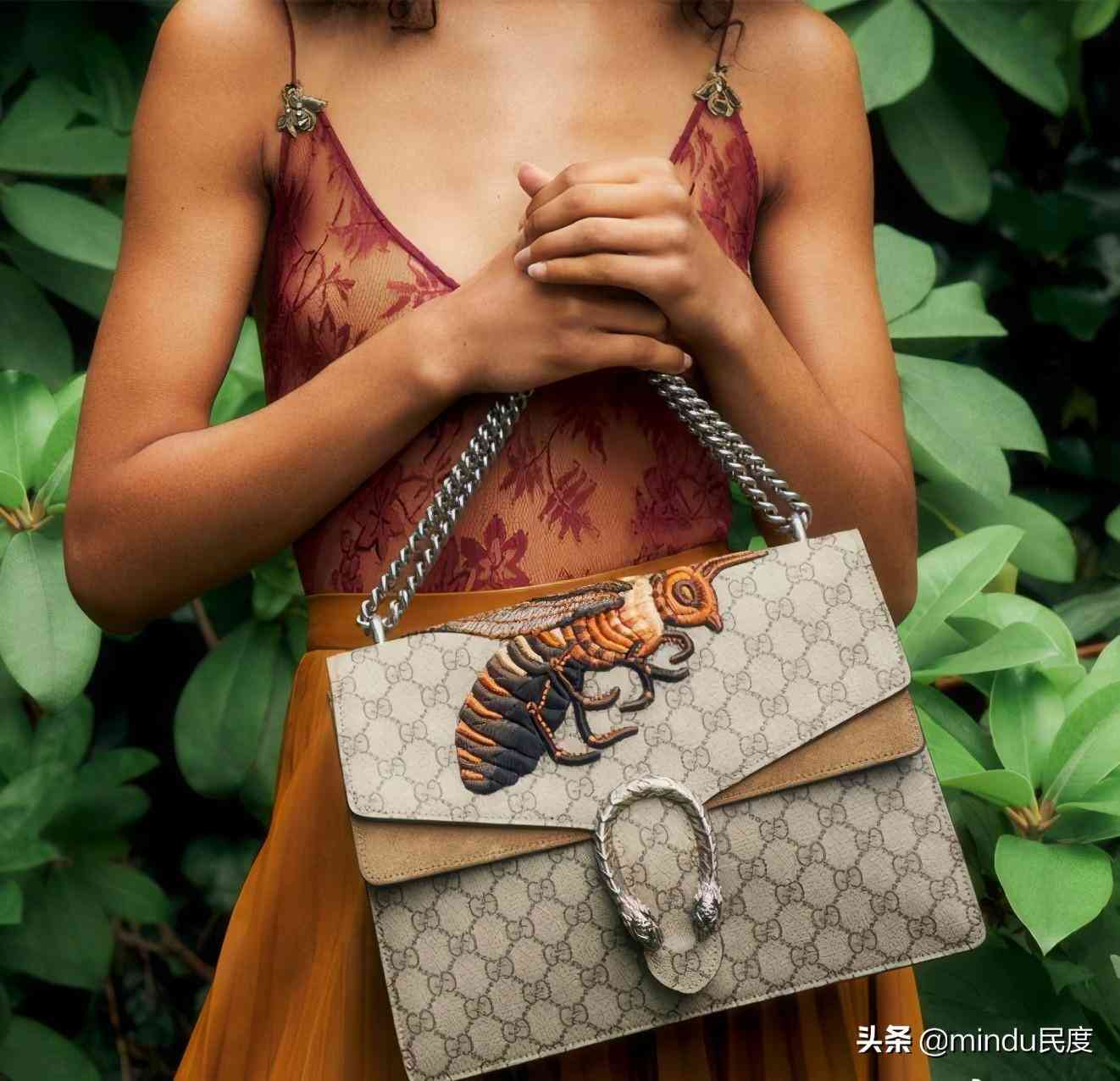 曾经红极一时的酒神包也不得不提,虽然近几年的热度已经不像刚推出时那么高,但它可以说是新一代Gucci的王牌爆款,而且定义了很多人心目中复古文艺的Gucci形象,完全展示了Gucci如今的风格。