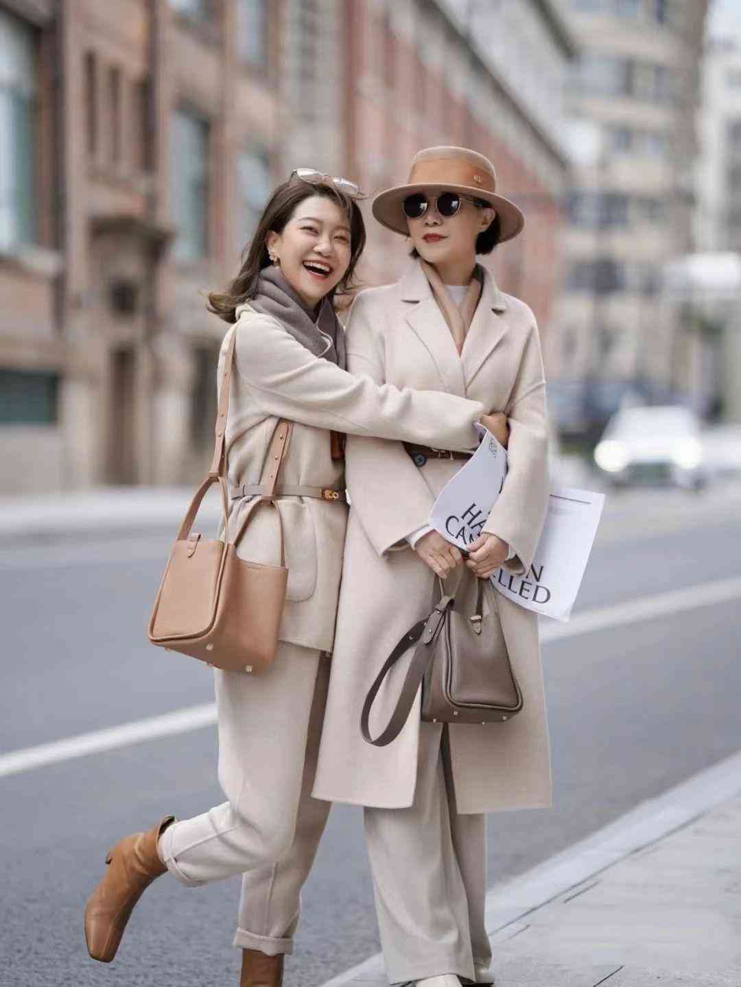 博主鹿鹿妈基本上都是围绕着这两点进行配色,比如穿米色系大衣时,通过采用同色系思路实现实现延伸,一方面放大了米色系的柔和与婉约,整体造型的质感都上升了,另一方面,也可以修饰身材。