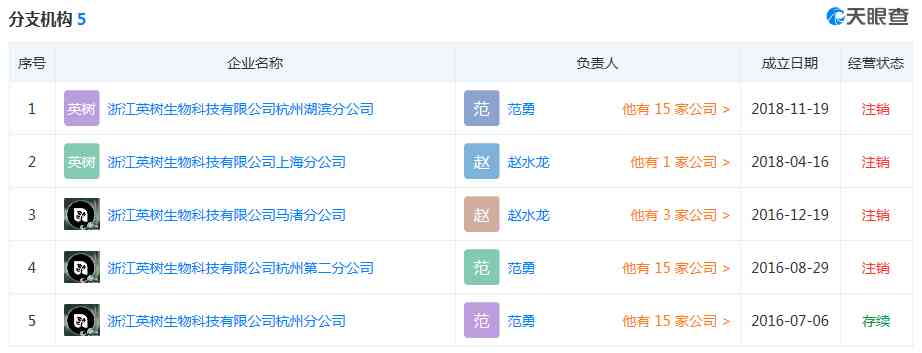 另外,英树的5家分公司,当前仅剩一家存续,其余四家皆注销。
