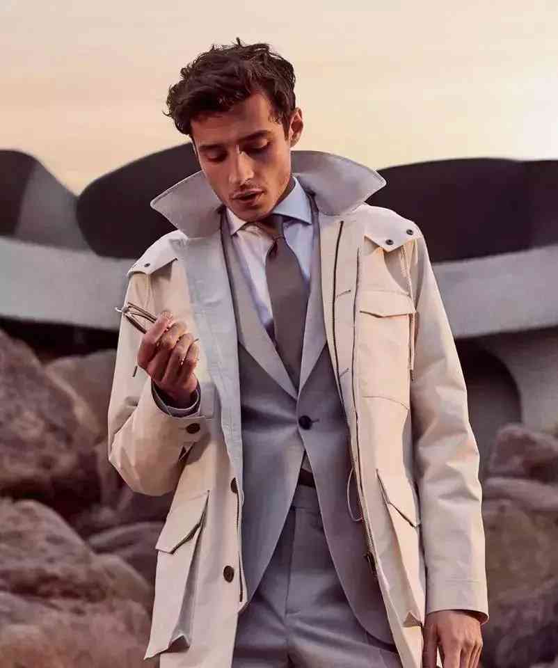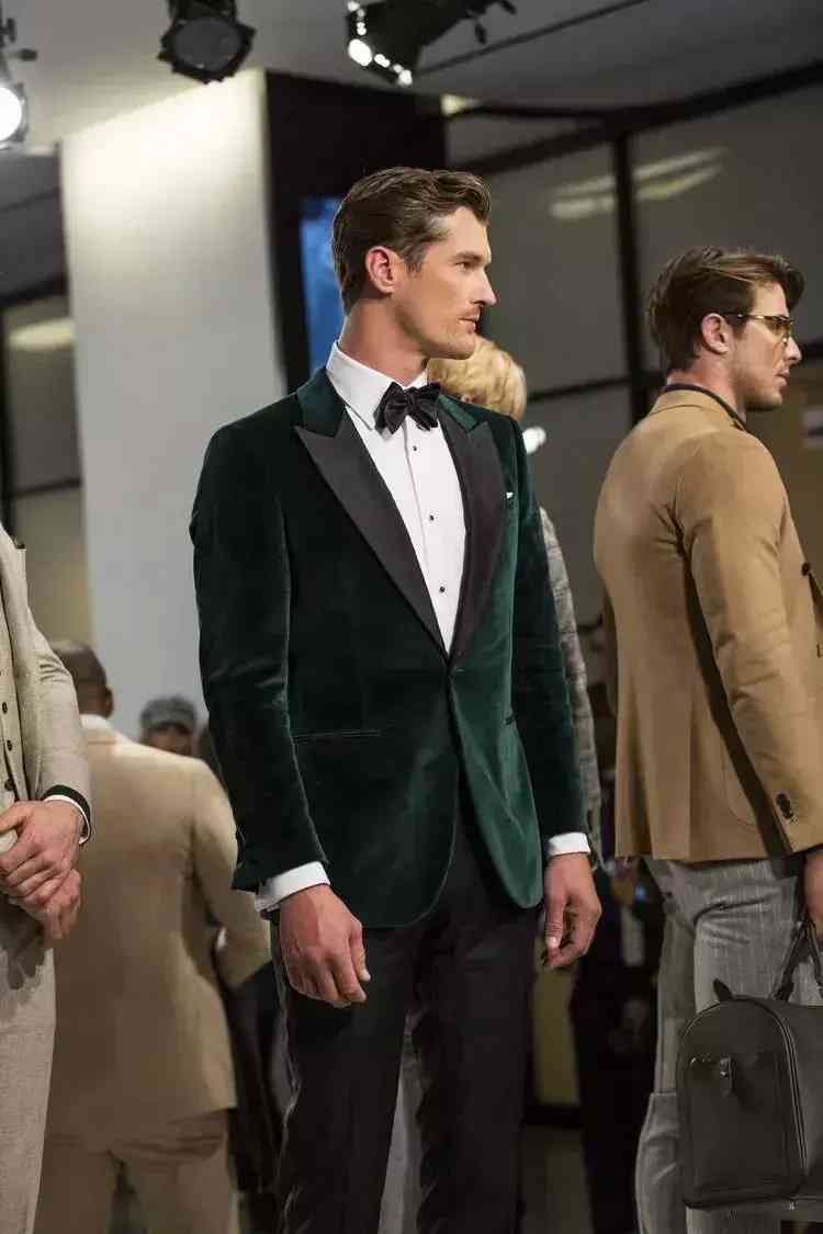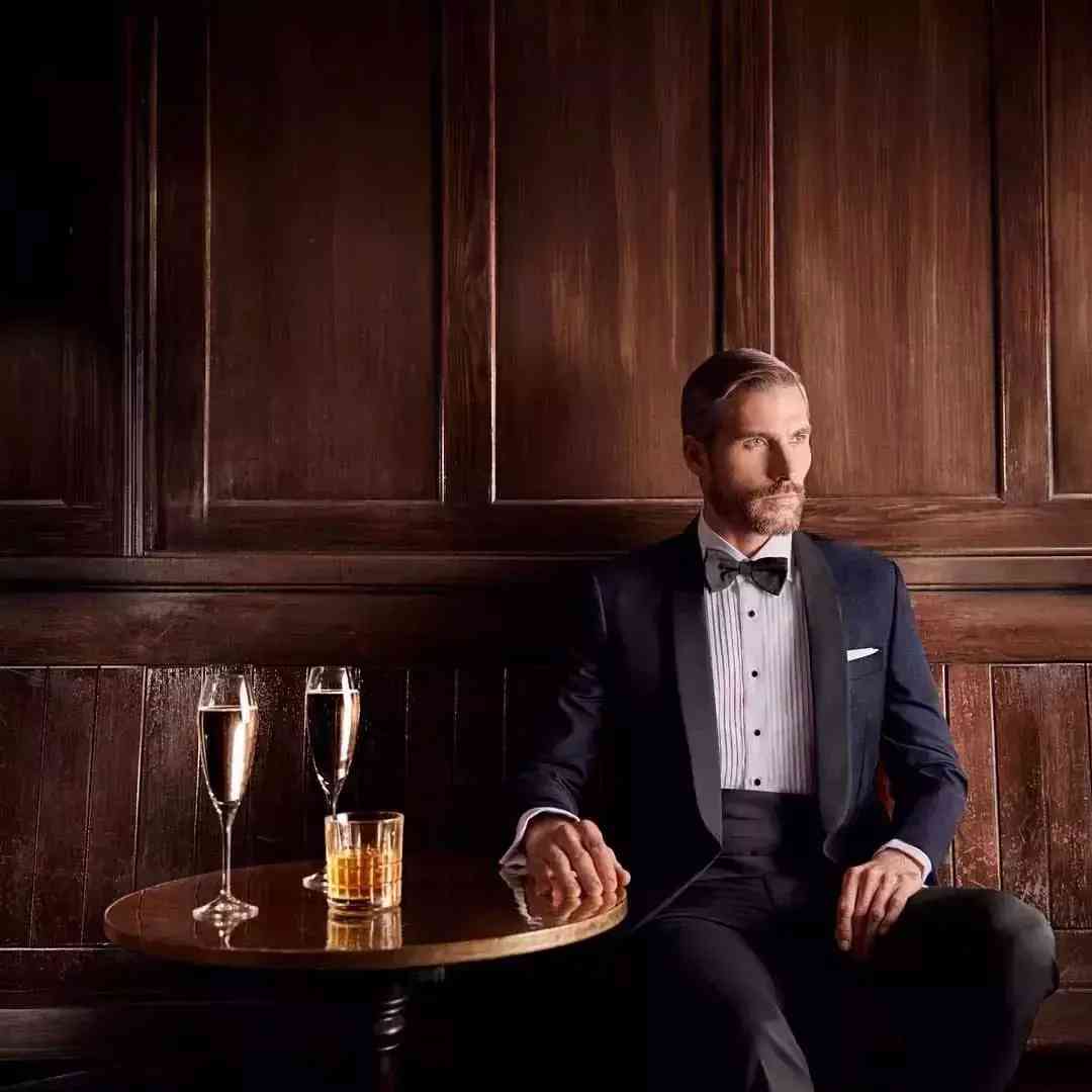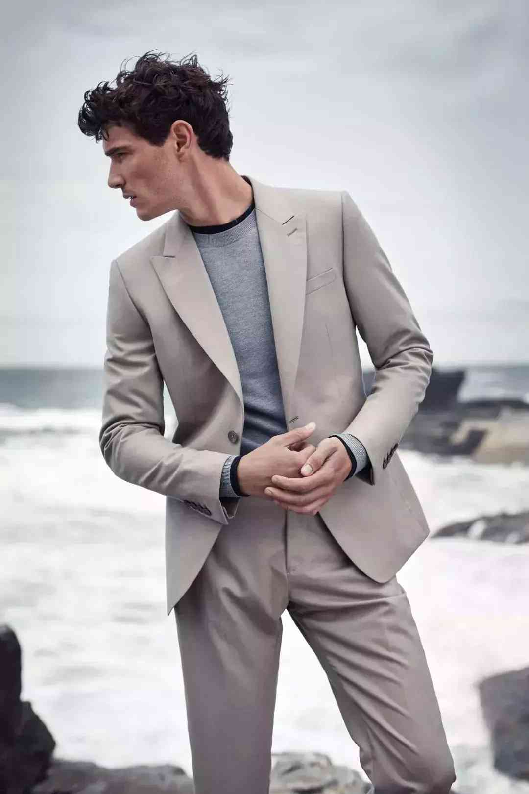从袖扣到西装的整体,都有种无可挑剔的剪裁感,选用来自英国和意大利的优质布料。