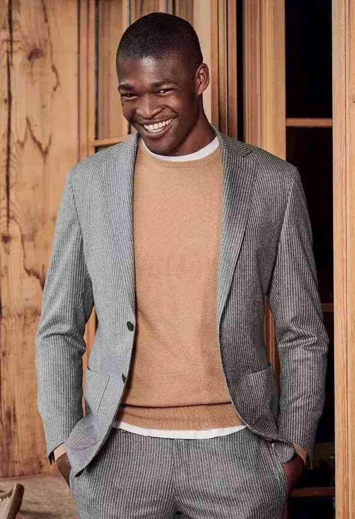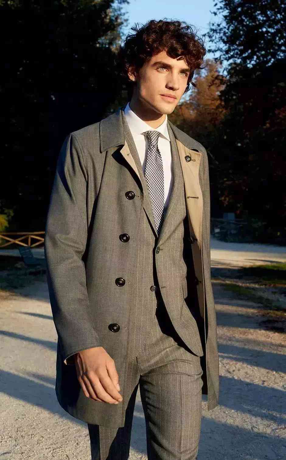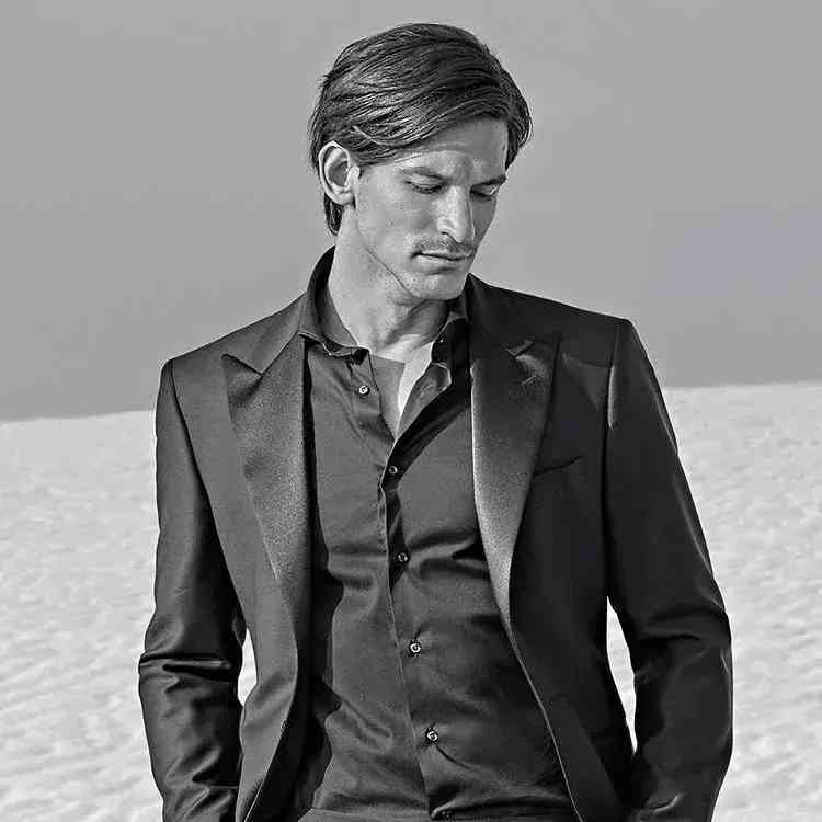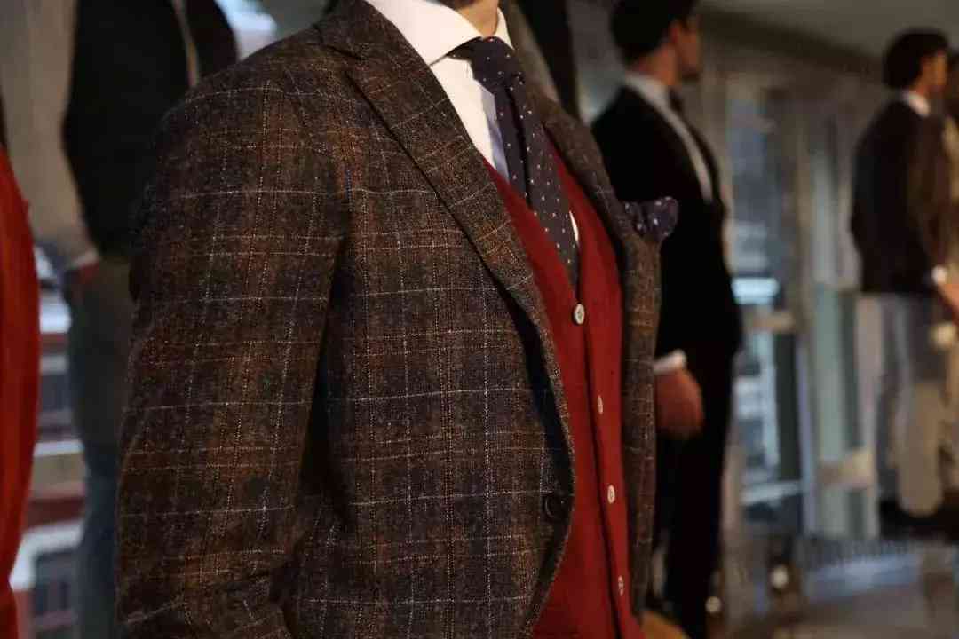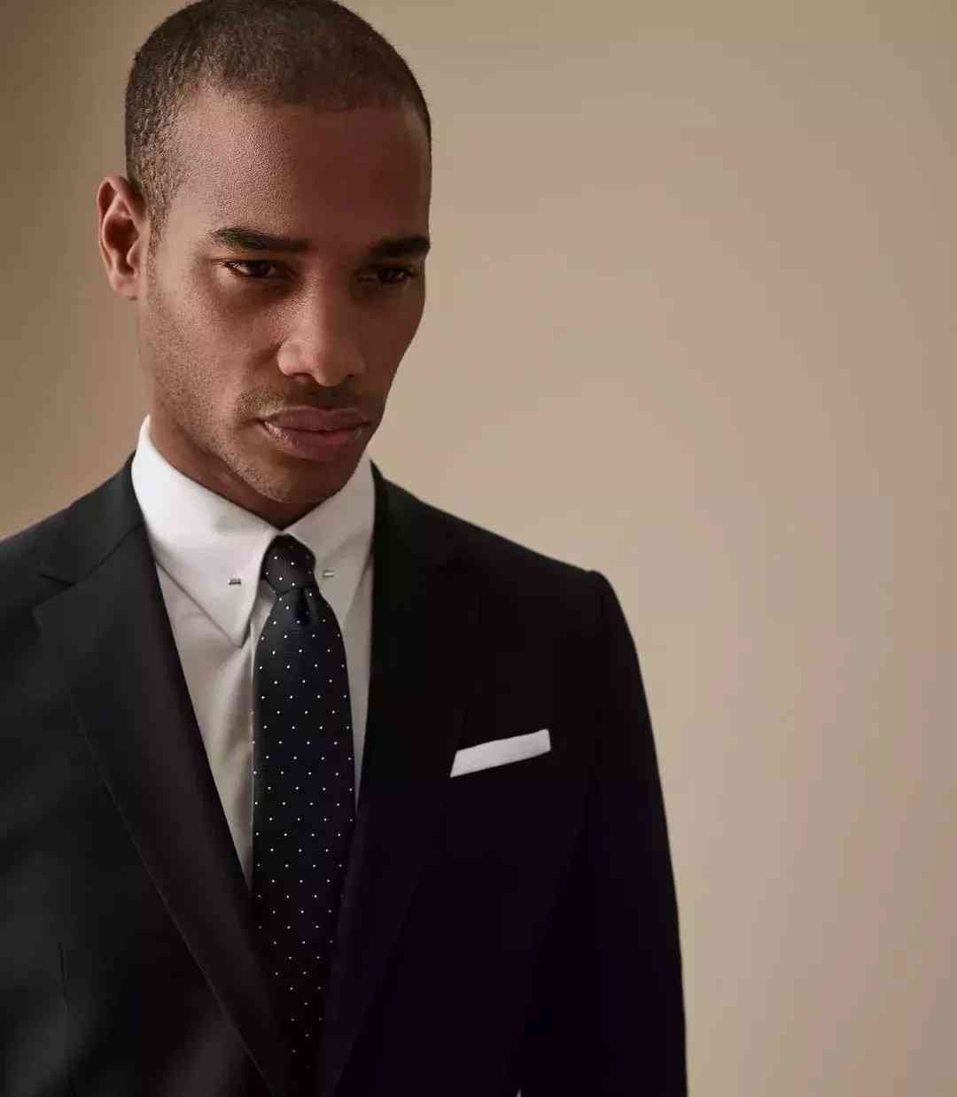 从袖扣到西装的整体,都有种无可挑剔的剪裁感,选用来自英国和意大利的优质布料。