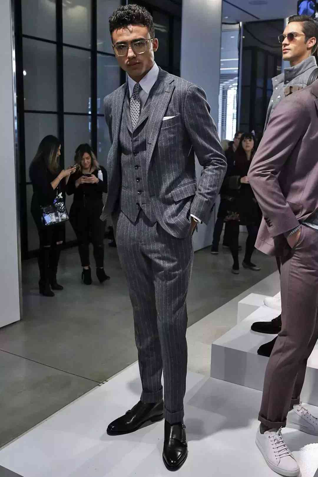 西装大致分为五个系列:经典、现代、奢华、Traveller(一种防皱羊毛面料)和礼服,且还细分了很多款式的西装,例如Napoli款式均是手工剪裁和制造,柔软轻便,采用那不勒斯的肩线设计(肩部线条像衬衫一样),带有超薄的垫肩但仍然可以呈现出自然的肩部线条。