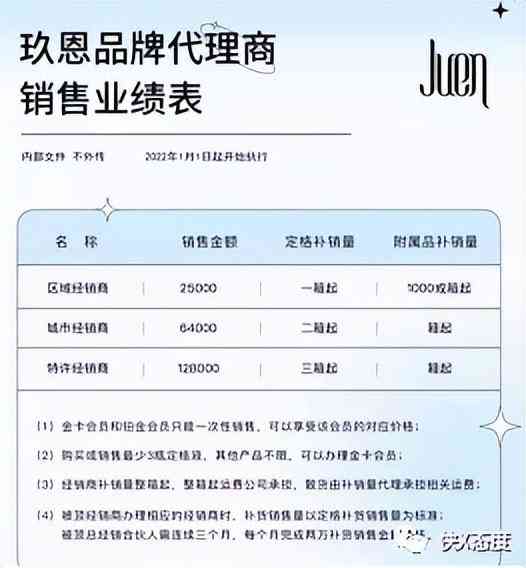 区域经销商、城市经销商、特许经销商需要分别一次性销售25000、64000、128000元的产品才可以申请。