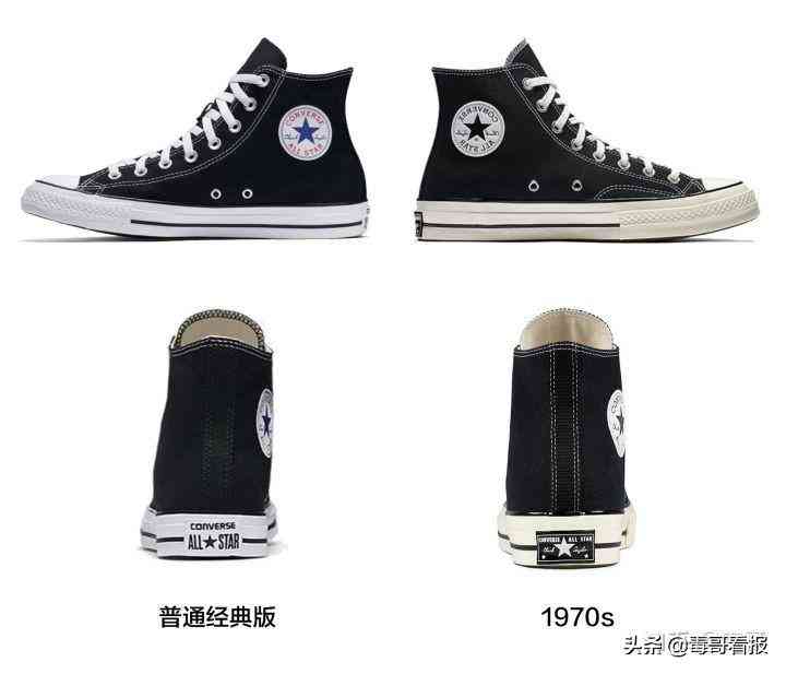 跟Chuck 70主要区别是:1、黑底三星标;2、车线在交汇处更显细尖