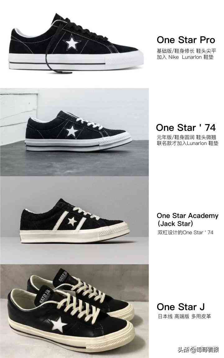 匡威CONS里面还包含了一个 one star 系列,而one star的标志是星, 没有箭。
