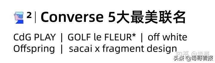 算综合实力,GOLF le FLEUR* 跟 Converse 的联名系列,妥妥的.名,不管是看合作时长还是质量、数量。放第二,只因毒哥对CdG有私心 = =!