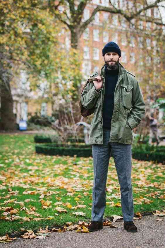 军事外套近几年被用于时尚穿搭上的几率越来越高,少见的M65夹克衫也有不少大咖上身,这种有个性的外套,在穿搭的过程中倾向于军事风格,能够展示更多的男士魅力。