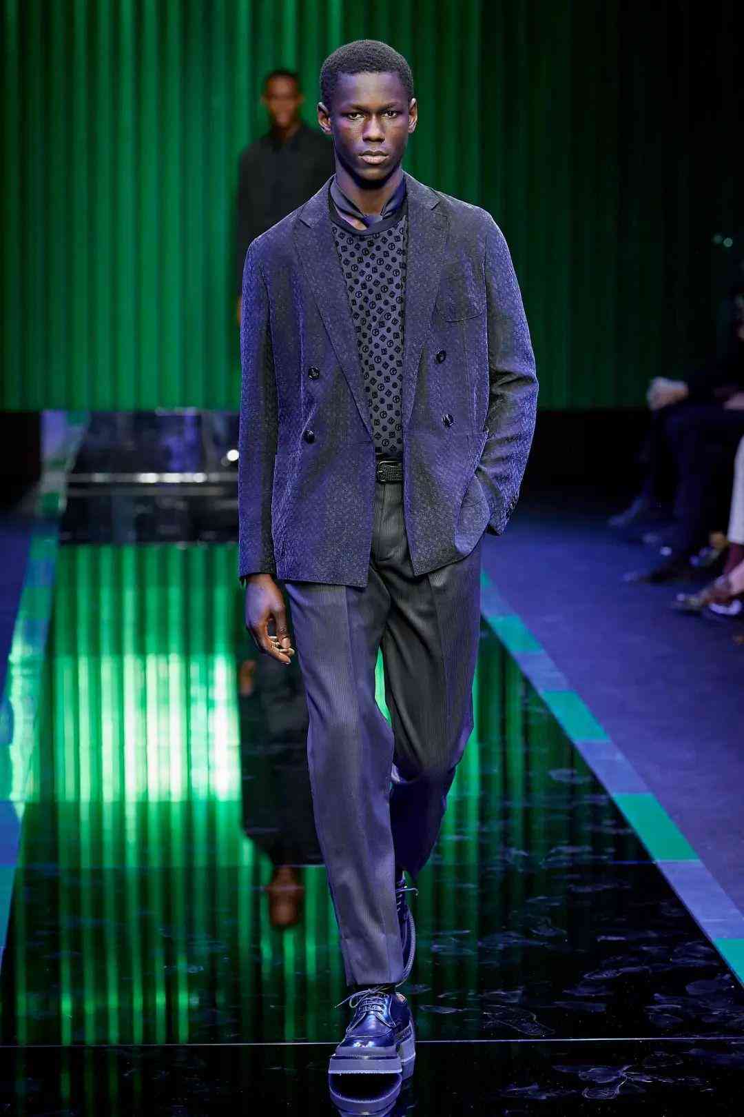 倘若稍做浪漫化理解,在Giorgio Armani的设计中,我们得见了“银河落九天”之美:那些珠饰流苏、水晶点缀,随着模特的行走,闪动出了迷人的耀眼光芒。细节之处,Giorgio Armani 2022秋冬男女装系列,亦是颇为可圈可点,比如,女装外套或于腰部进行了收紧设计,或状若流体般地飘逸垂下,两种截然不同的女性气质跃然于此,前者锋利锐意,后者闲适自得;又如,男士西装外套的内搭,或于领口处搭配一抹亮色,或在下摆拼接一块儿明媚色彩,干净、利落、得体,但毫不死板。