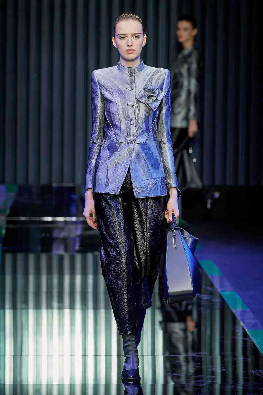 在秀场笔记中,Giorgio Armani诠释道:“多年以来,阿玛尼的女性没有发生改变,「她」的基本特征始终如一,即成为一个意志坚强、头脑清醒的人,而「她」所穿着的服装,是将真实的自我加以外延,而非用服装掩饰、支配自我。「她」始终如一地选择超越潮流的永恒优雅。”