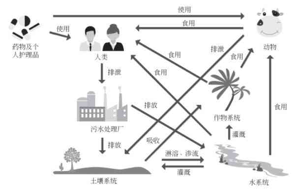 人体未代谢吸收的药物成分通过尿液、粪便等形式重新进入水环境;