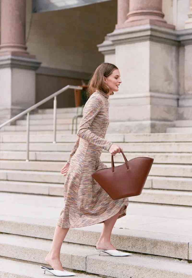 除了款式,值得一提的还要求大地色系。作为秋季标志色系的大地色,不仅是近两年女人高级感的体现,更是成熟女性的魅力颜色。大地色系的针织裙更是秋冬季节的百搭好物,无论是单穿还是内搭,它都能发挥所长,尽显女性的优雅知性气质。