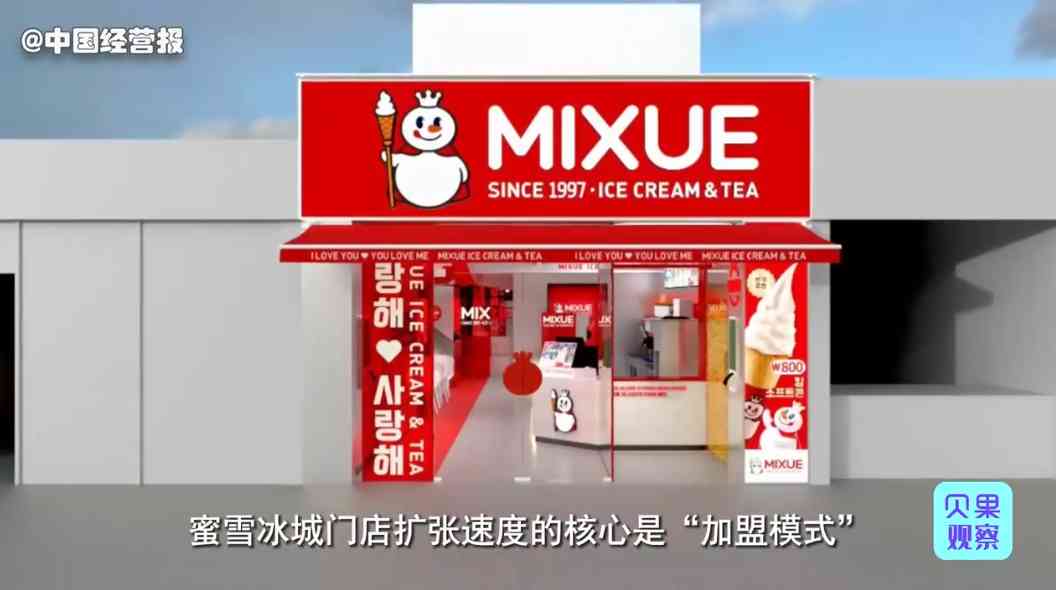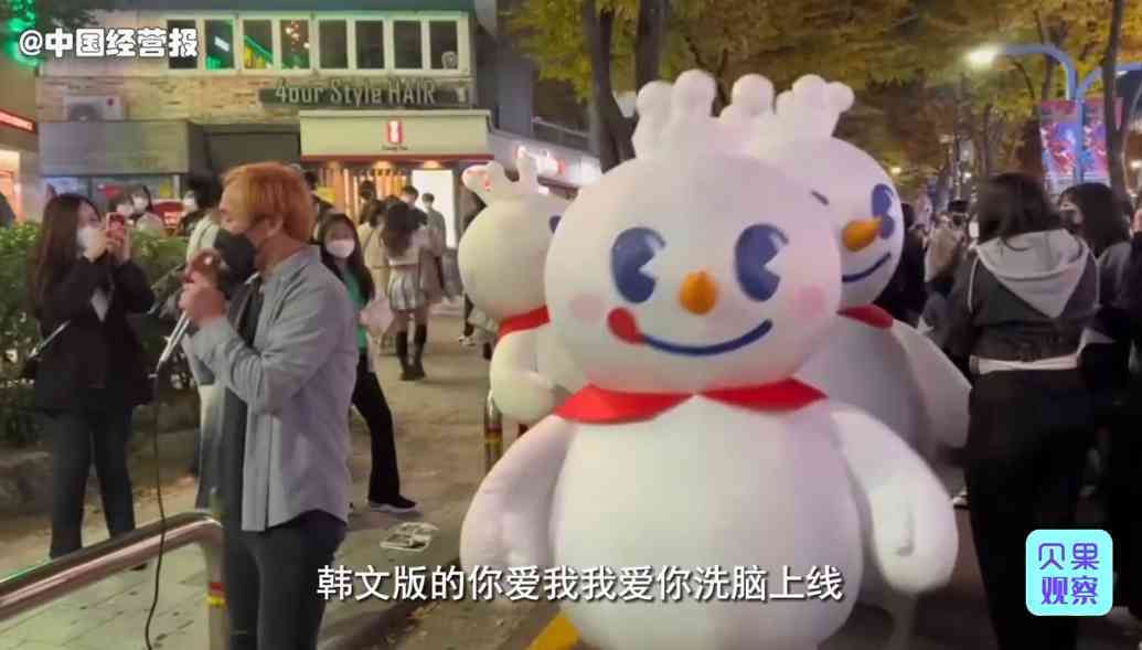 值得注意的是,蜜雪冰城的品牌营销不容忽视。其打造的雪王IP,依靠“街溜子”等耍宝视频加深了用户印象,一首雪王“神曲MV”更是洗脑了无数人。这次在韩国开店,韩文版的“你爱我,我爱你”洗脑上线,雪王在韩国街头散步的视频,引发了韩国朋友好奇。
