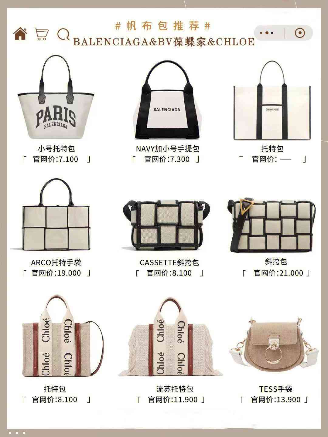 Balenciaga家的帆布包很素雅,和土酷风撇的干干净净,利落的线条和简约的配色很难不爱~BV的编织元素和帆布结合瞬间有解构风的味道了!Chloé的帆布tote一度火出圈~