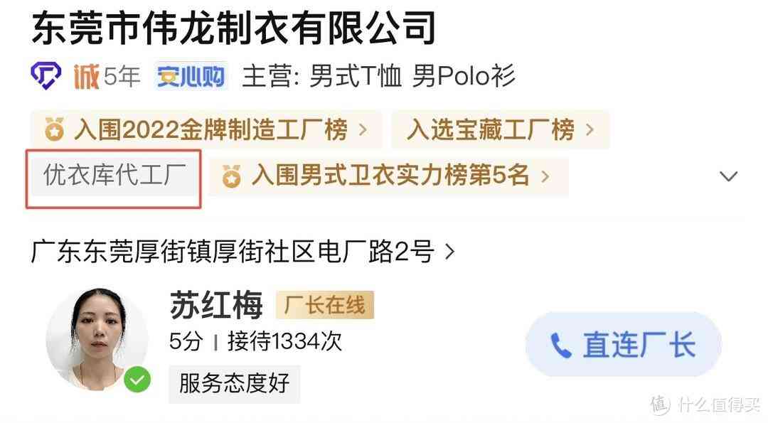 ④优衣库代工厂:东莞市伟龙制衣有限公司