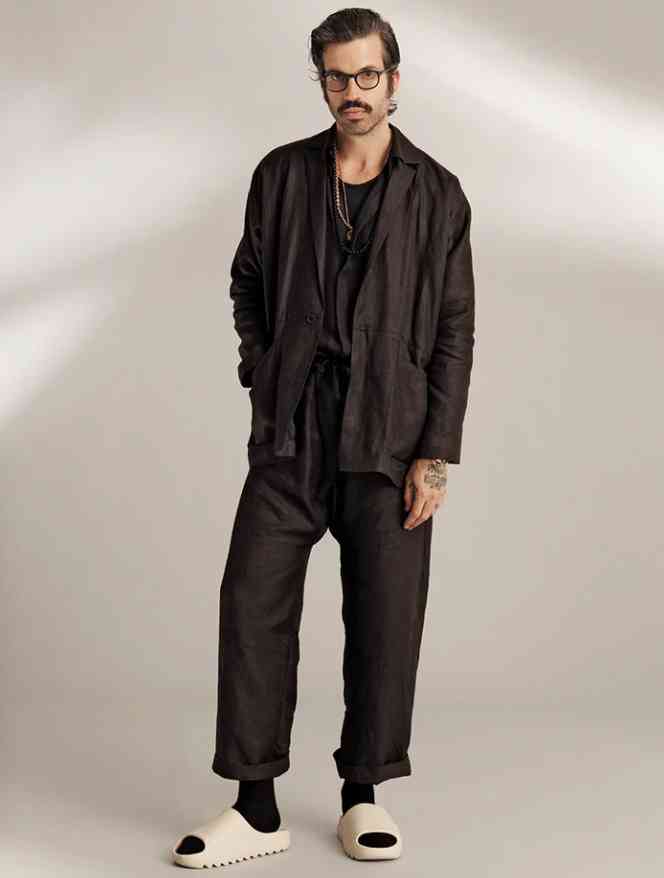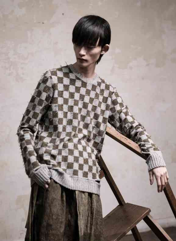 上海设计师Ziggy Chen的卓越设计经典,不仅是因为他们感觉与现代潮流毫不一样,而且因为他们看起来就像几百年前的作品。他的作品,比如一件不对称的夹克,像午夜森林的颜色,或者一件泥泞的绿色垂肩双排扣外套,边缘都是斑纹而柔和的,就像你在大都会博物馆看到的一样。2011年,42岁的陈创立了自己的品牌。此前,他是一名纺织品设计教授,但从未做过时装设计师。他的制作过程是独特的,运用了他从研究古董服装中学到的中国传统和西方的缝纫技术,使得衣服看起来破旧但又完全新鲜。