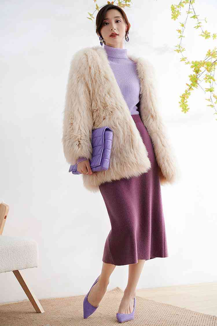 若是你的肤色偏暖色调,那么打底衫的颜色可以选择大地色系、蜜粽色系,基调中带有黄色的,基本上都可以被黄皮女生驾驭。若你的肤色偏白偏冷,那么棕色系穿在身上可能会显得肤色暗淡,没有黄皮女生那般惊艳。所以灰色、褐色、宝蓝色这类内搭颜色,则更加容易穿出气质来。