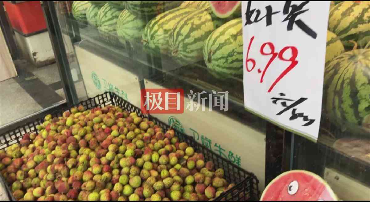 实际上10元3斤的荔枝还远不是最低价。在武昌中北路的一家生鲜市场里,极目新闻记者发现最便宜的荔枝只要2元一斤,不过看上去也是最后清货的甩卖价,而正常供货的荔枝则根据品质每斤从6.9元到9.9元不等。