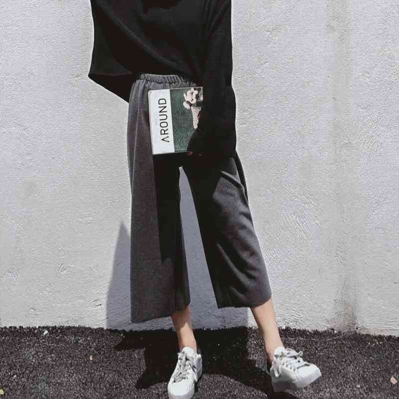 近年来,针织裤开始兴起,针织面料在冬天更为保暖,穿起来暖合时髦,且针织的垂感比较强,适合冬季,对双腿修饰有很好效果。