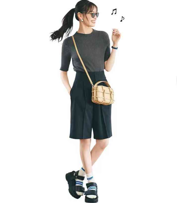 夏天的黑色中裤,最是应景。颜色普通、长度适中、风格保守,不愧是基本款里榜上有名的经典大拿。