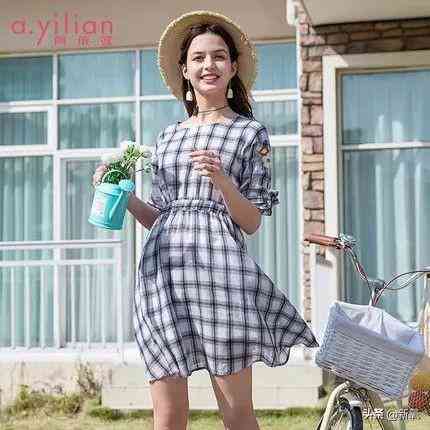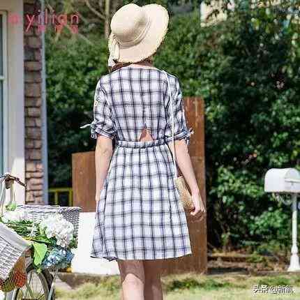 格纹田园风连衣裙
