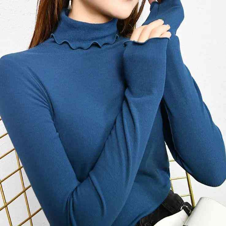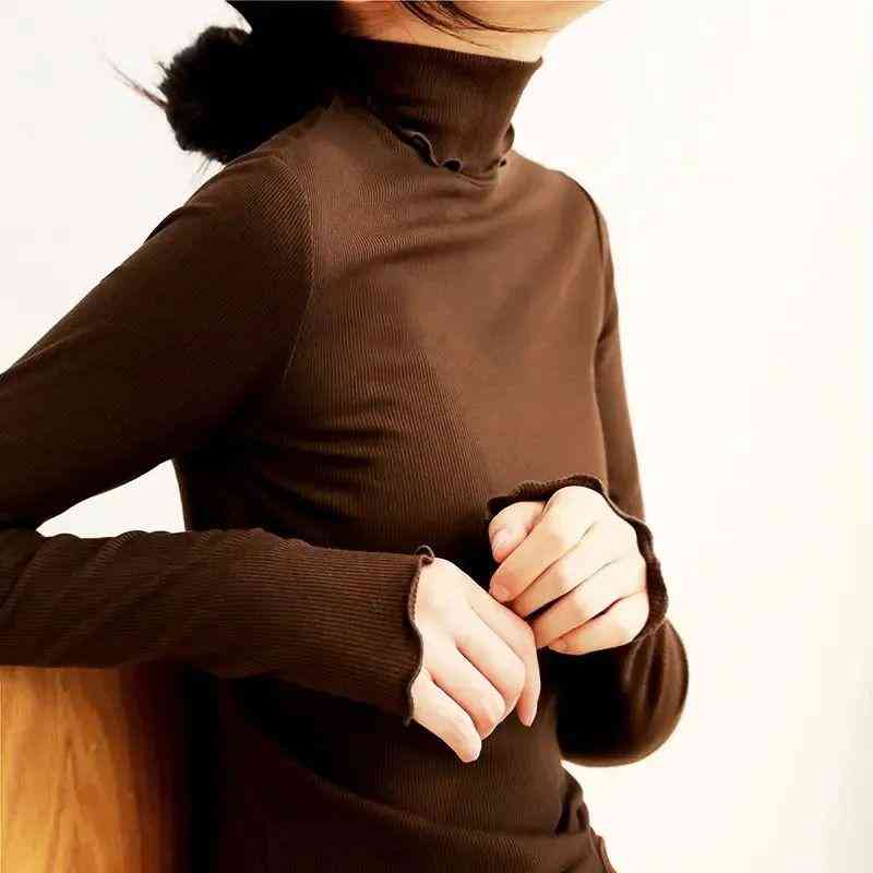 比如这次要给大家安利的——“桑蚕丝木耳边高领打底衫”,就深得我们办公室小姐妹的芳心。