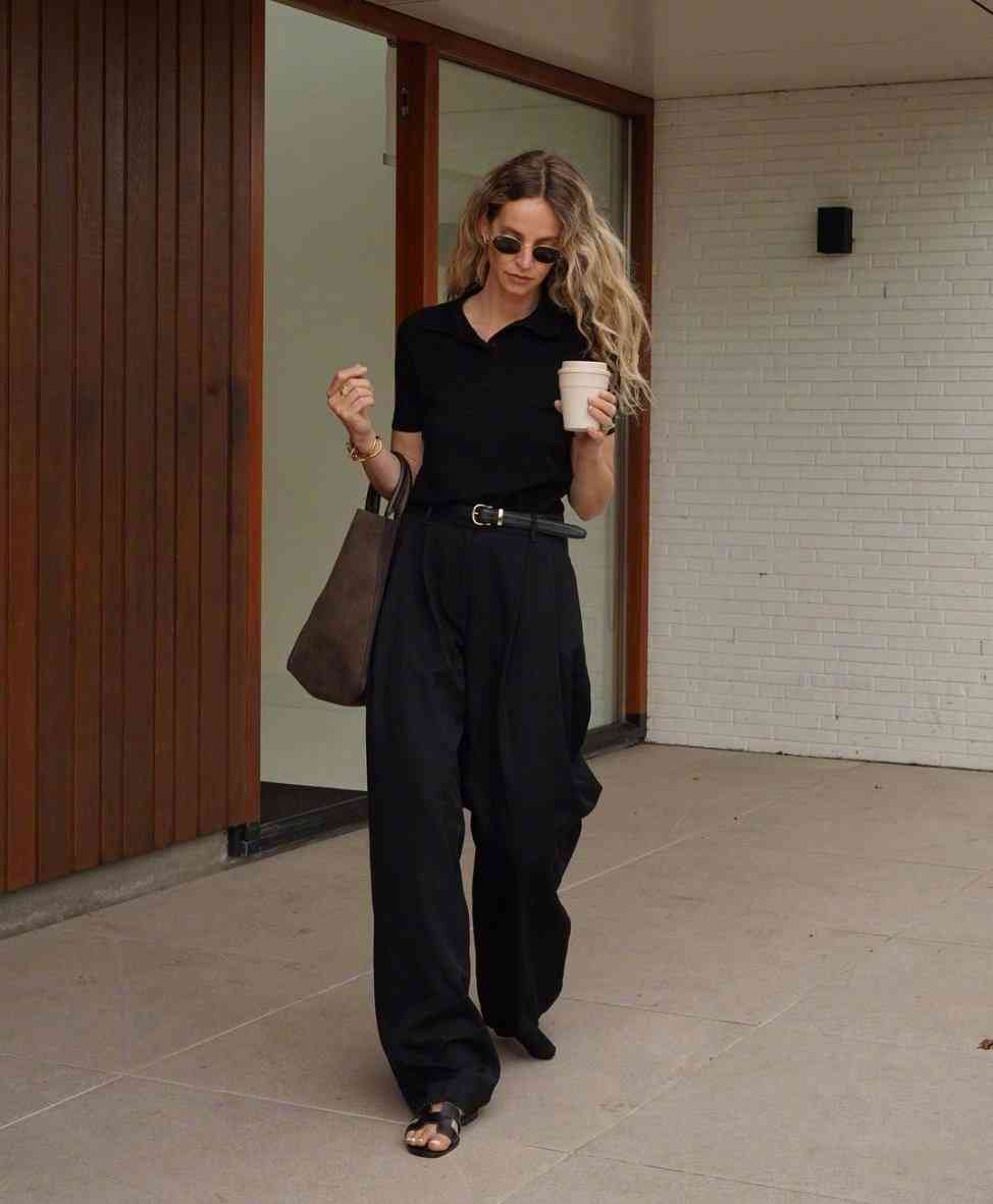 同色系穿搭相对来说更高级,而且优势也非常明显,可以打造更好的身材比例,比如黑色的上衣,搭配黑色的裤子,结合黑色的腰带,哪怕是微胖身材尝试这套穿搭,也依旧可以体现出好形象。